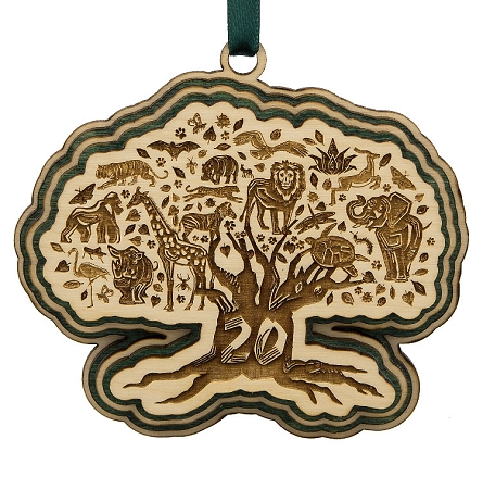 Celebrate Animal Kingdom’s 20th Anniversary with this wood Ornament. Features the Tree of Life.