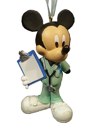 fully-sculptured Mickey Mouse Ornament has his clipboard in hand and his scrubs on. He is sure to bring many smiles from Walt Disney World Resort.