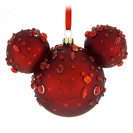 Mickey Mouse icon glass ornament with faceted ruby gems – some arranged
