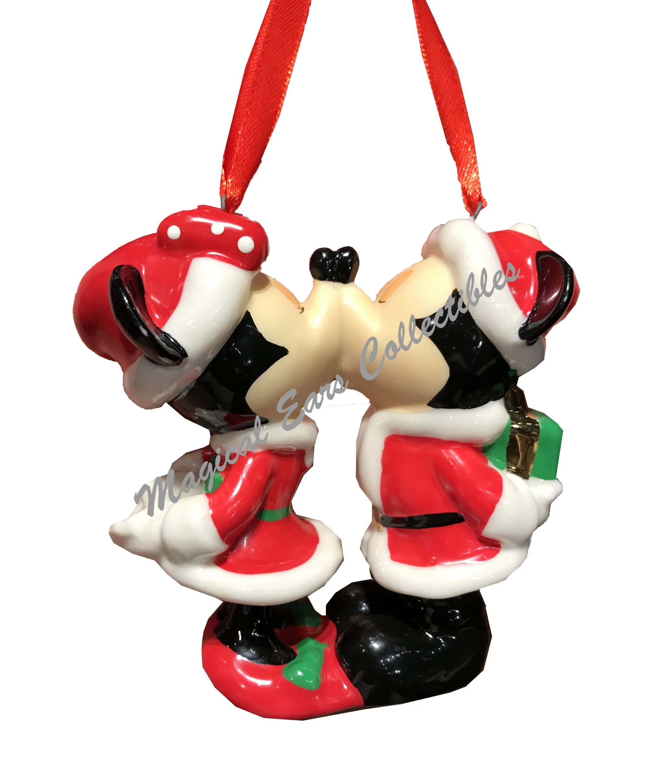 Hang up a reminder or your Disney Vacation with this sweet couple. Features Santa Mickey and Minnie Kiss as they hide presents behind their backs.