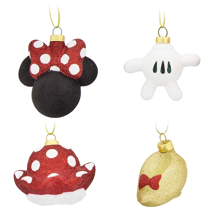 - Set of four Minnie Mouse ornaments in icon, glove, dress and shoe designs