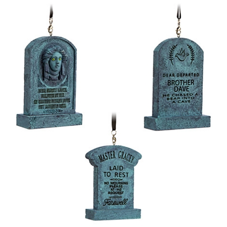 Tombstone Ornament Set. This set of three miniature headstones featuring