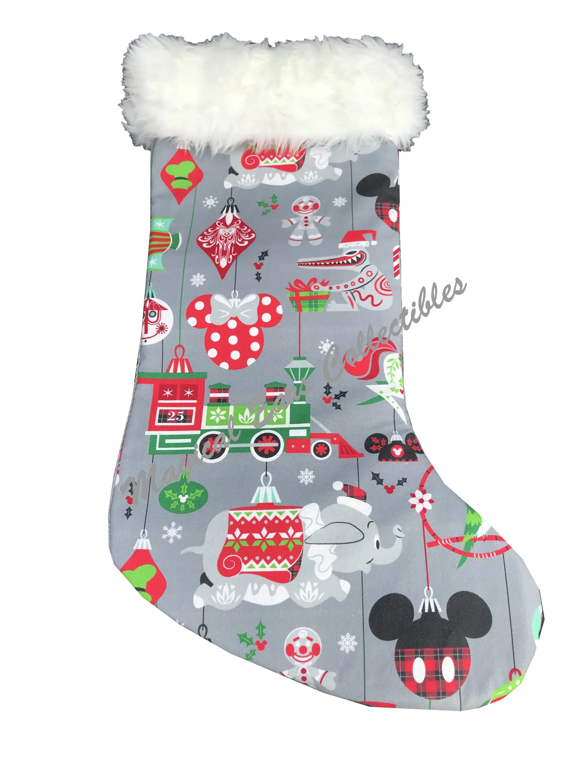 This Nordic Winter wonderland stocking features beautiful hanging ornaments all around. With Mickey, Minnie, Dumbo, and More.