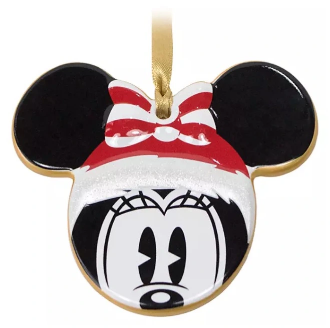 Make your holiday décor oh-so jolly this season with our ceramic Minnie Mouse icon ornament featuring Minnie in a Santa hat with a striped bow on one side and a festive group of peppermints on the reverse.