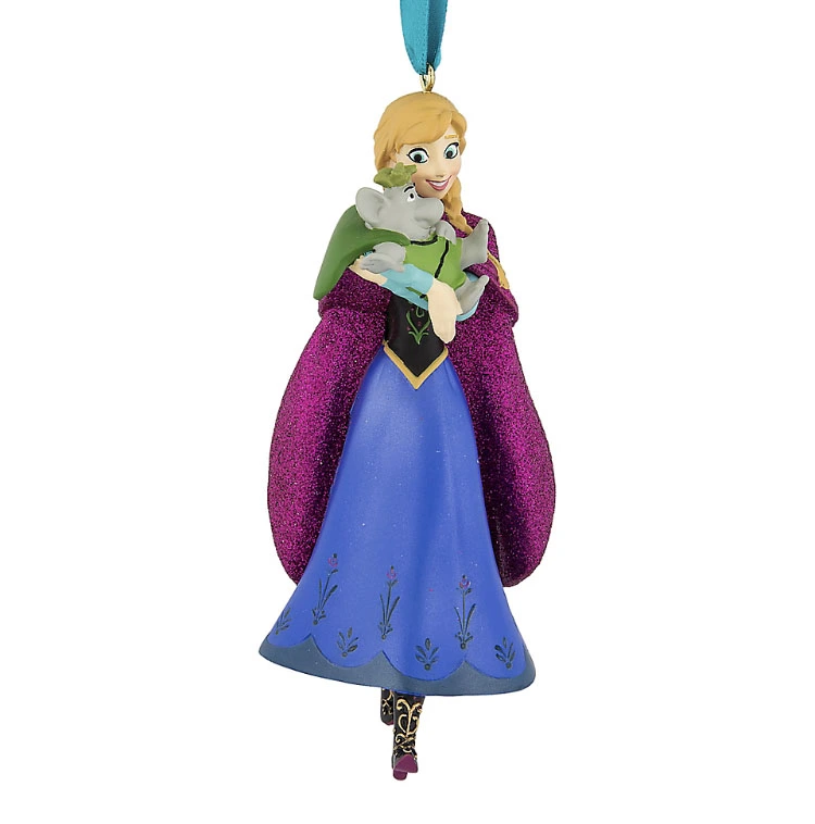 In her glittering satin gown, Anna with Troll ornament comes home for the first