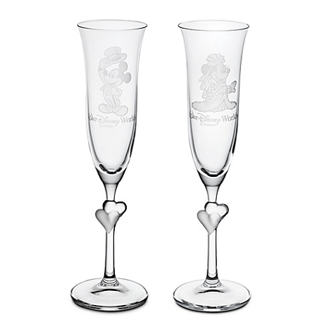Share a romantic toast with this pair of Minnie and Mickey Mouse Glass Flutes. Created by Arribas, they feature etched artwork of Bride Minnie on one glass and Bridegroom Mickey on the other. Personalize them and they become the perfect wedding gift.