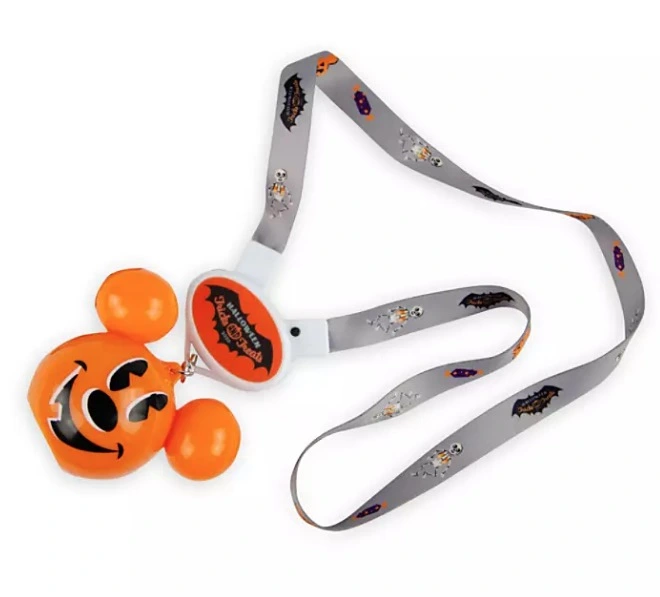Trick or treat with an ear-ie glow when you wear this light-up lanyard. Mickey’s jack-o’-lantern icon shines bright and comes attached to a printed lanyard commemorating the holiday.