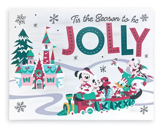 ‘Tis the season to be jolly so Santa Mickey and the gang plan to brighten your holidays with this light-up sign that’s perfect for a wall or window display.