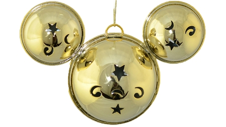 Add a magical touch this year to your Christmas Tree with this gold Mickey Mouse icon Metal Ornament, with stars and moons.