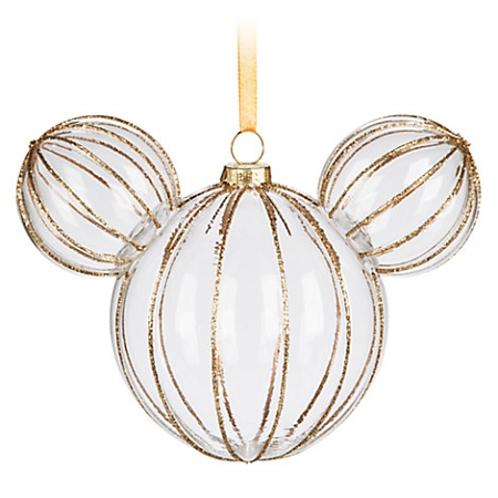 Mouse icon clear glass ornament framed in glittering golden ribs.
