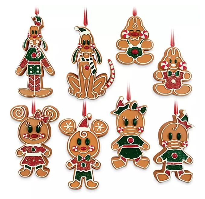 Enjoy a taste of the holidays with this sweet set of ornaments inspired by gingerbread men cookies. Mickey, Minnie, Goofy, and Pluto are among the eight designs of this cute set that features glitter detailing to add some character and sparkle to your decorations.