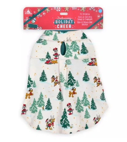 When your four-legged friend is dog tired, then bundle them off the bed in this pet sleepwear! Delivering holiday cheer, the button-up design has an allover festive print featuring Mickey, Minnie, Pluto, Chip, and Dale!