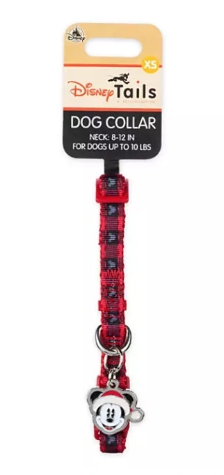 Get your four-legged friend dressed in their holiday best. Available in different sizes, this sturdy Mickey Mouse dog collar features a black and red plaid print and metal charm of Mickey in a Santa hat.