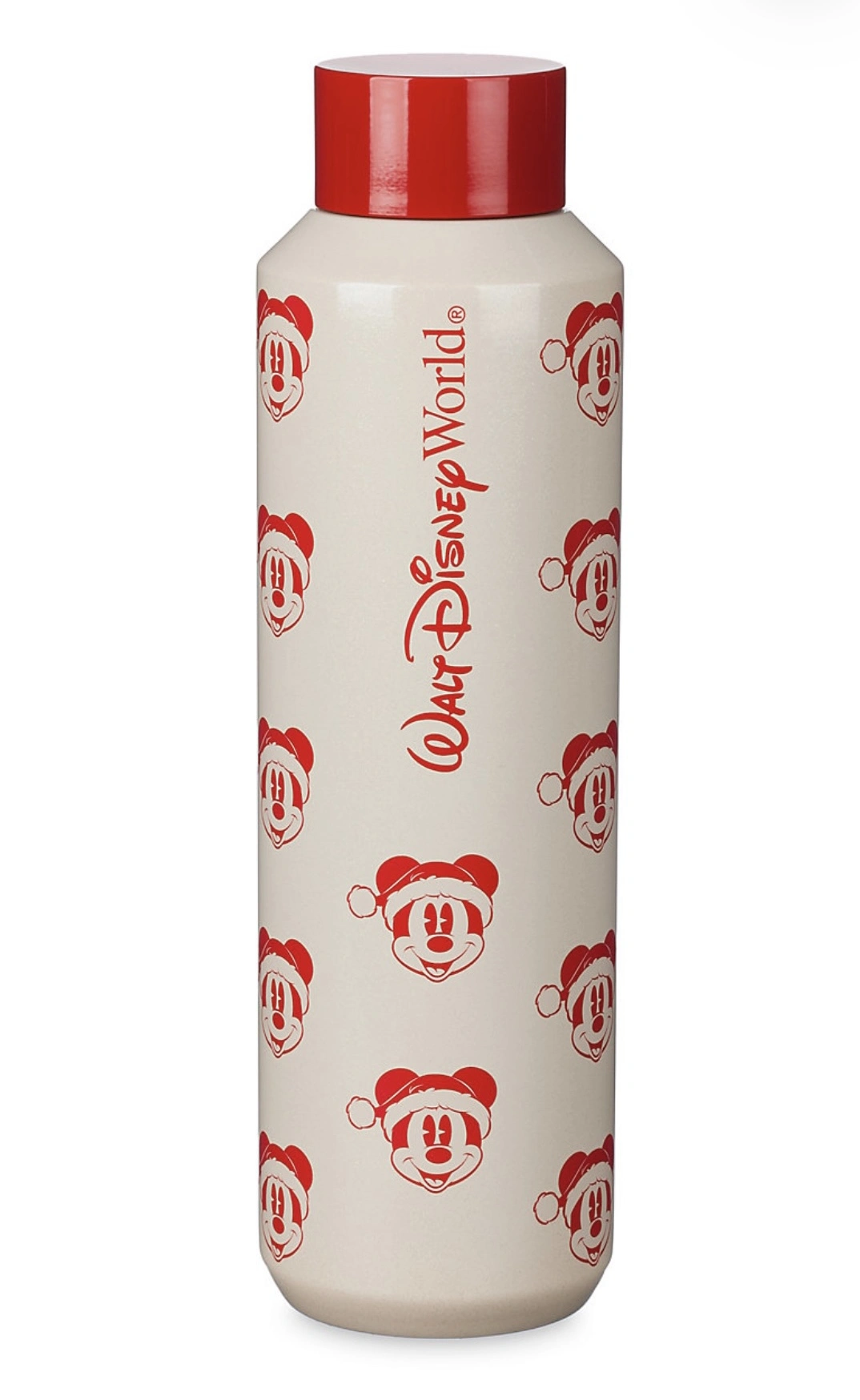 Sip all the holiday-themed drinks in this festive stainless steel water bottle by Starbucks. Featuring an allover print of Mickey Mouse wearing a Santa hat, metal Starbucks logo and Walt Disney World logo, this double wall stainless steel bottle makes a wonderful souvenir of The Most Magical Place on Earth.